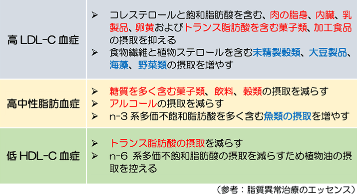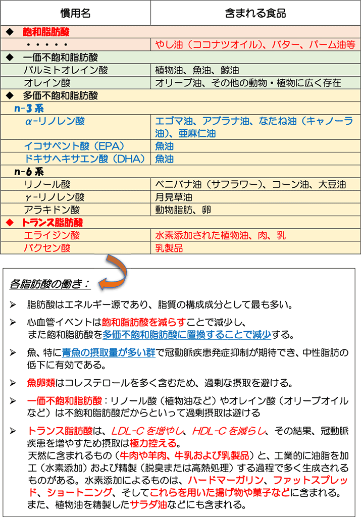 - ⑤ 飽和脂肪酸:LDL 受容体の活性化を低下させ、LDL の組織への取り込みを抑制、結果として血中 LDL-C の増加を来す。