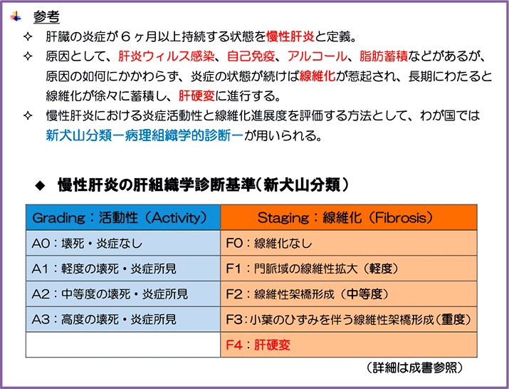 ・肝線維化の程度を推定。