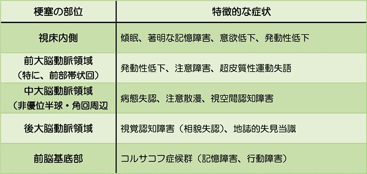 視床前核、視床背内側核、海馬、前脳基底部などの、記憶に関与する重要な部分に生じた単一病変による認知症。
