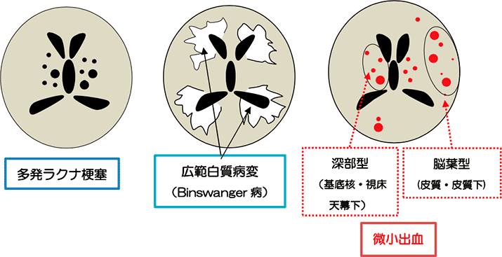 これらを小血管性認知症と称し、血管性認知症の約半数を占め最も多い病型である。